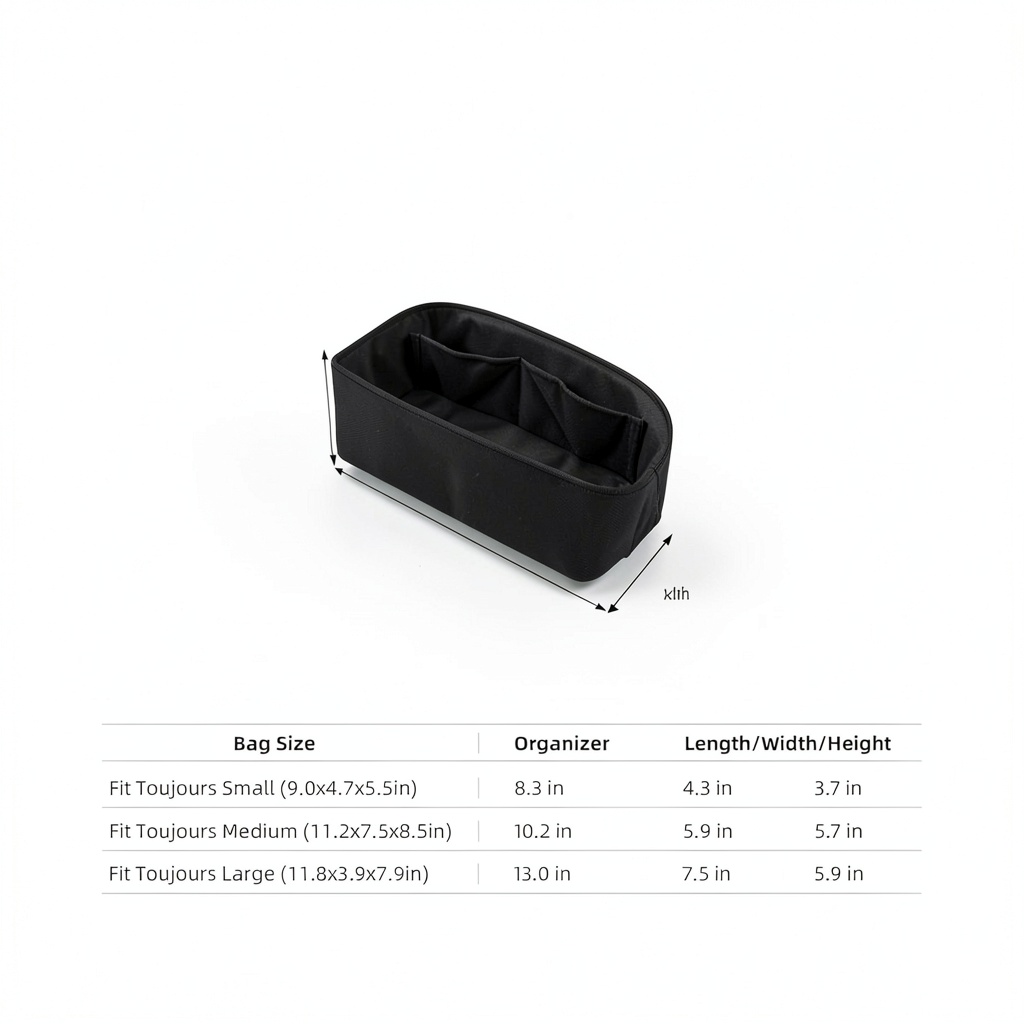 Measure the internal dimensions of your handbag and refer to the size chart provided. Each size is tailored for specific bag models to ensure a perfect fit.