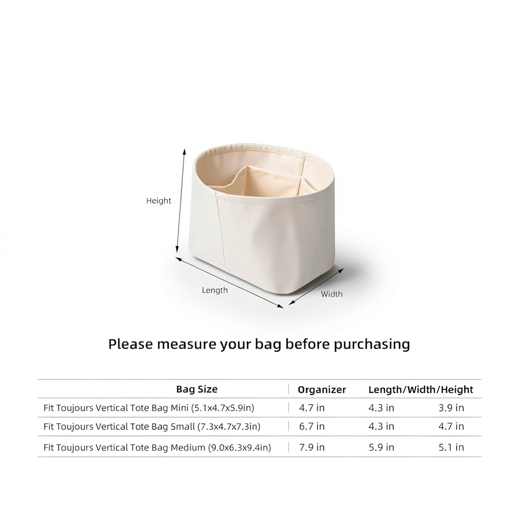 Measure the internal dimensions of your handbag and refer to the size chart to select Mini, Small, Medium, or Custom for an exact fit.